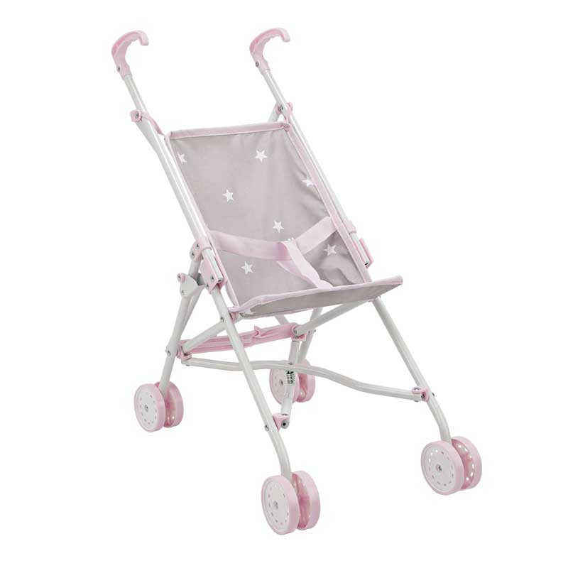 Малките момичета труднооставят любимите си кукли. С количката „Емма“ ще могат да ги взимат навсякъде със себе си! Очарователната детска количкае на доказаната испанска марка Arias, много лека иудобна за бутане от детските ръчички. Изработена е от качествени материали всъчетание с приятни материи. Металната конструкция е сгъваема, което улеснявапренасянето и съхранението в различни пространства. Моделът съчетава нежни цветовев пастелно розово и сиво с елементи на звезди.