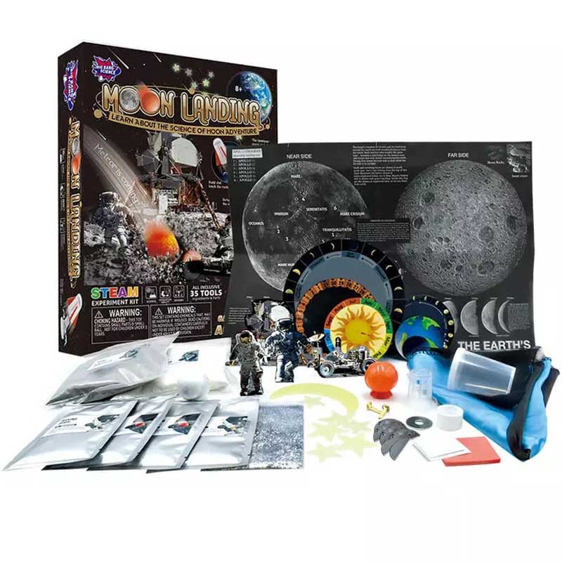 Луната е била обект на множество увлечения и изследвания, а с този комплект образователни играчки за кацане на Луната най-накрая ще научите повече за нея. Вече може да си имате своя собствена лаборатория за лунни приключения!