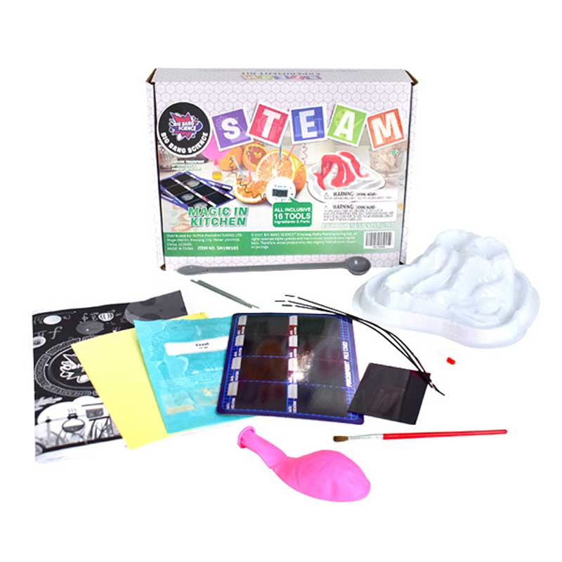 С нашия детски комплект можете да превърнете дома си в STEAM лаборатория, разкриваща магията на кухнята и нейните научни явления. Искате да разберете как? Следвайте ръководството за употреба, направете опитите в него и разберете повече за заобикалящия ви свят. Този комплект ще развие творчеството, въображението, креативността и сръчността ви, като ви помогне в придобиването на важни умения.