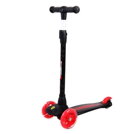 Колелата са направени от прозрачен висококачествен и високоустойчив полиуретан и търкалящи се висококачествени лагери ABEC 5. Движението с тях е напълно безшумно и плавно. Платформата е ниска, за да има повече стабилност при управлението на превозното средство. Тя е със специално покритие, което не позволява плъзгане. В предната си част детската тротинетка има бутон, чрез който се заключва, за да може да се движи само в права посока. По този начин се улеснява обучението на всяко дете. Спирачката е дълга и обхваща цялото задно колело, което спомага за по-доброто спиране и в същото време предпазва самото колело. Играе ролята и на калник.