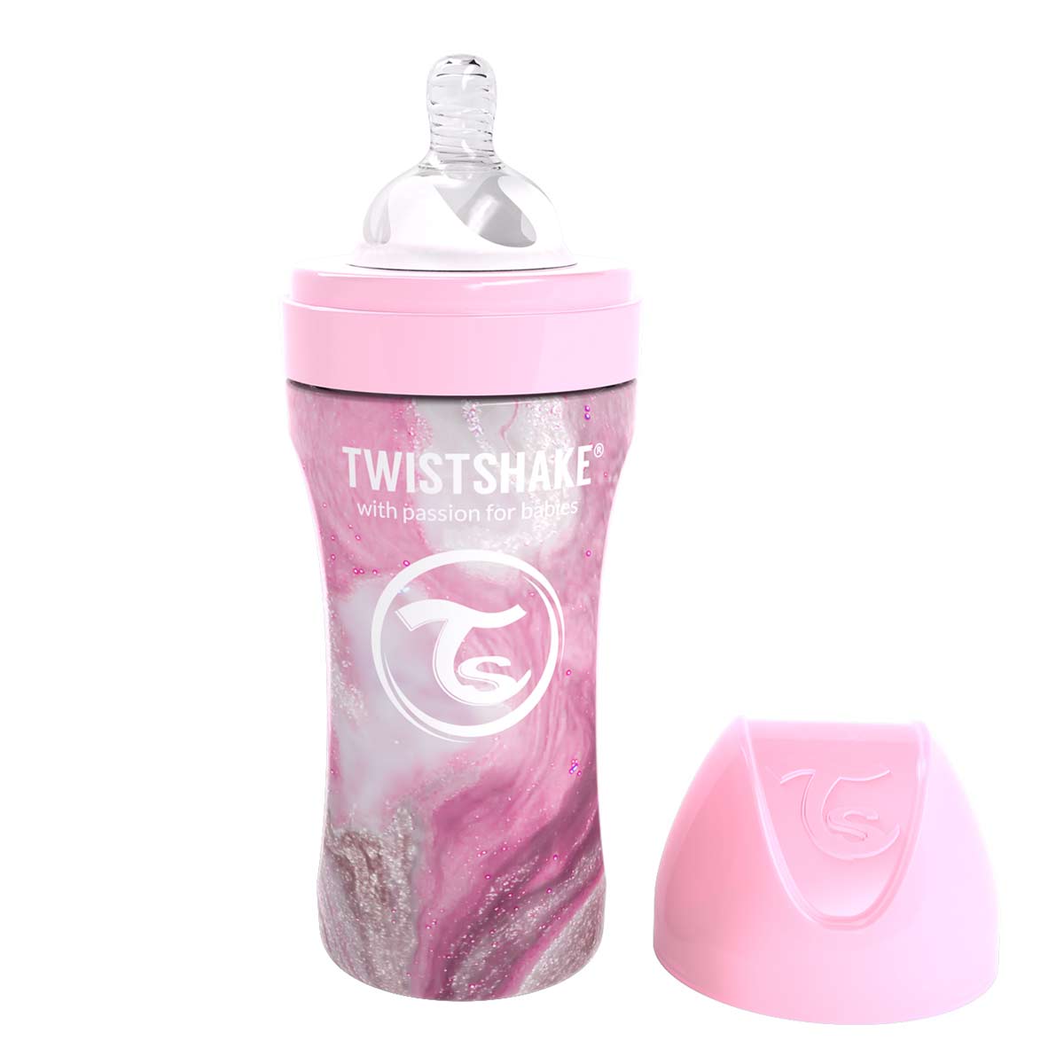 Бебешко шише Twistshake 330 мл от неръждаема стомана – Мраморно розово