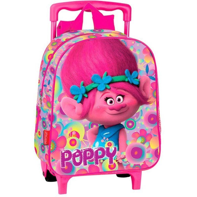 Детската раничка с лика на Тролчето Попи е много подходяща за кратки почивки, разходки или всекидневна употреба. Тя е със свеж дизайн и може да се използва както като раница с регулируеми презрамки, така и като количка, благодарение на колелата и изтеглящата се дръжка. Оборудвана е с две колела и с две крачета за допълнителна стабилност.